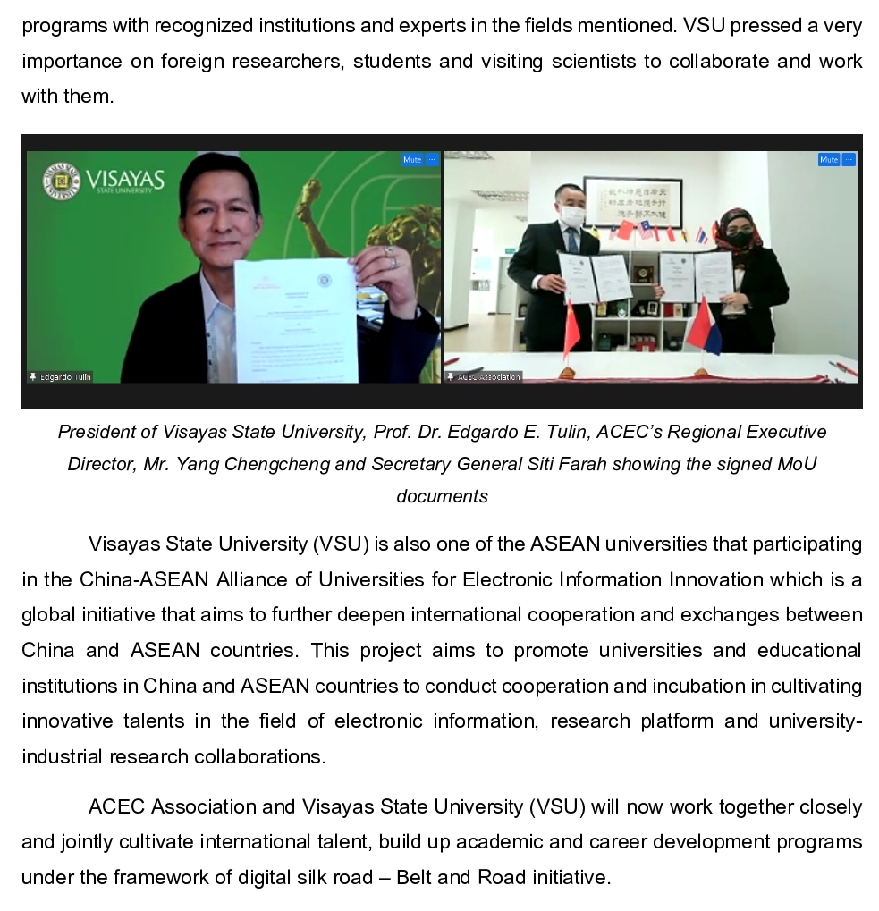 MoU Signing Ceremony between ACEC Association and Visayas State University, Philippines